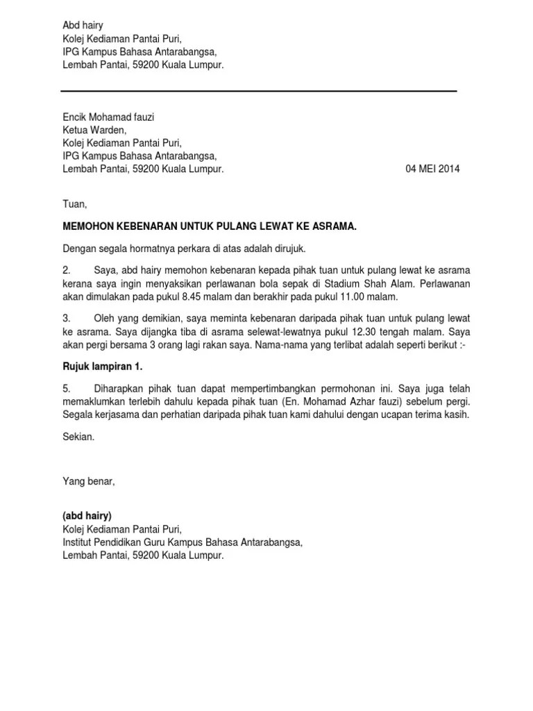 Surat Rasmi Memohon Kebenaran : Surat Rasmi Contoh Kiriman Kerajaan Cara Tulis Format. 12.04.2022 · berdasarkan pemakluman melalui surat edaran rujukan jpa.bk(s)306/4jld.2(6) bertarikh 25 september 2019 berhubung pemansuhan penggunaan borang psd form (performance) 6/1993 di kementerian/jabatan persekutuan telah dinyatakan bahawa pegawai yang diluluskan cuti belajar adalah layak diberikan pergerakan gaji sebenar sepanjang tempoh … Petender dibenarkan mengemukakan surat "kebenaran khas menyertai tender di luar bidang pengkhususan" yang … Sekiranya majikan tidak memohon memo periksa keluar, pra tersebut masih dianggap bekerja dengan majikan dan majikan masih bertanggungjawab terhadap pra berkenaan.